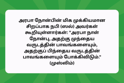 இஸ்லாமிய மார்க்கத்தில் அரபா நாள் என்பது மகத்தான சிறப்புகளையும், எண்ணற்ற நன்மைகளையும் ஒருங்கே அள்ளித்தரும் ஒரு பொன்னாளாகும். துல்ஹஜ் மாதத்தின் ஒன்பதாம் நாளே அரபா நாள் என…