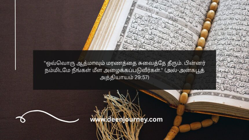 “ஒவ்வொரு ஆத்மாவும் மரணத்தை சுவைத்தே தீரும். பின்னர் நம்மிடமே நீங்கள் மீள அழைக்கப்படுவீர்கள்.” (அல்-அன்கபூத் அத்தியாயம் 29:57)